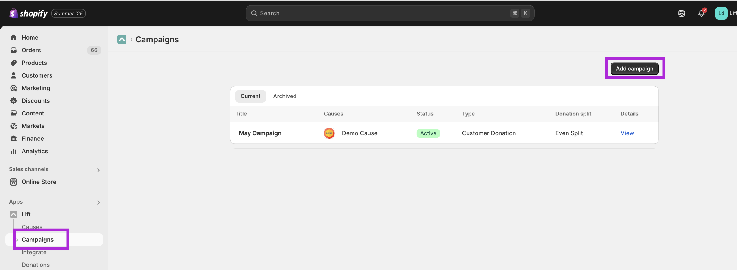If you have a Lift Pro subscription you can also access the "Customer Donation" campaign type.